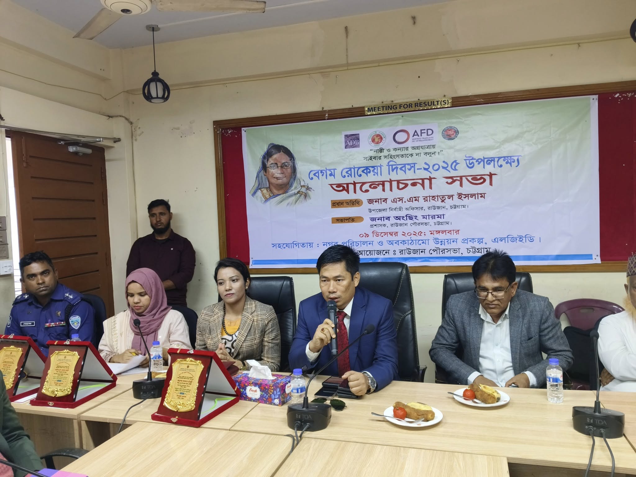 <div class="xdj266r x14z9mp xat24cr x1lziwak x1vvkbs x126k92a"> <div dir="auto">রাউজান পৌরসভার উদ্যোগে বেগম রোকেয়া দিবস-২০২৫ উদযাপন।</div> </div> <div class="x14z9mp xat24cr x1lziwak x1vvkbs xtlvy1s x126k92a"> <div dir="auto">সভাপতি: জনাব অংছিং মারমা</div> <div dir="auto">প্রশাসক, রাউজান পৌরসভা, চট্টগ্রাম।</div> </div> <div class="x14z9mp xat24cr x1lziwak x1vvkbs xtlvy1s x126k92a"> <div dir="auto"> ০৯-১২-২০২৫খ্রিঃ [gallery size="large" jnewsslider="true" jnewsslider_zoom="true" ids="1406,1407,1408,1409,1410,1411,1412,1413,1414"] </div> </div>