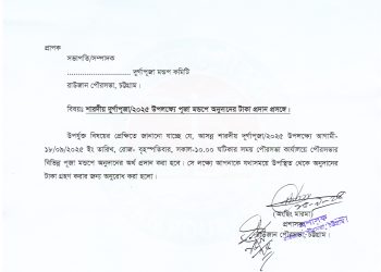 শারদীয় দুর্গাপূজা/২০২৫ উপলক্ষ্যে পূজা মন্ডপে অনুদানের টাকা প্রদান